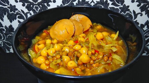 Густой суп из чечевицы с нутом и сардельками ¦ Сытный и очень вкусный суп