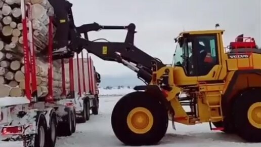 Разгрузка техникой спиленных деревьев