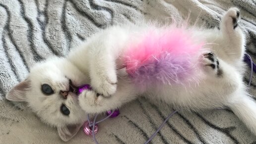 Котёнок играет с дразнилкой