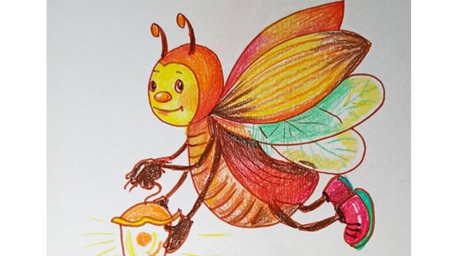 Жучок - светлячок. Короткая зарисовка маркером и карандашами.