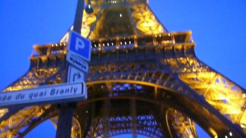 Эйфелева башня включает ночные огоньки