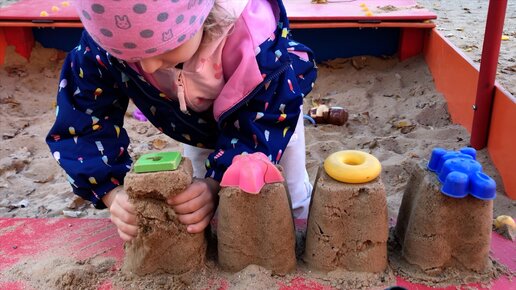 Ева и Папа играют в песочнице - Учим Цвета Ломаем песочные фигуры