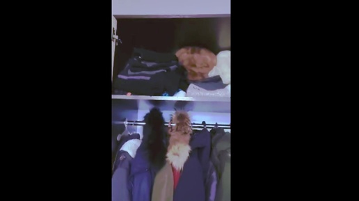 Шкаф с зимними вещами. Зимние куртки, шапки, шарфы, осенние ветровки и другая теплая одежда