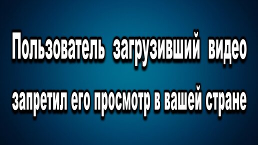 Пользователь, загрузивший видео, запретил его просмотр в вашей стране