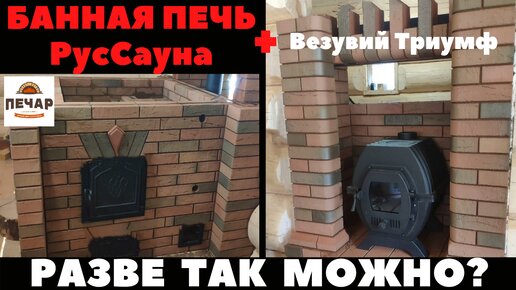 Кирпичная Банная печь "РусСауна". Чугунная печь Везувий Триумф. Совмещаем печи в единый банный комплекс?
