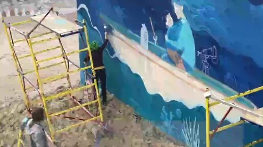 «Море, город и любовь»: как рисуют сказочное граффити на променаде в Светлогорске