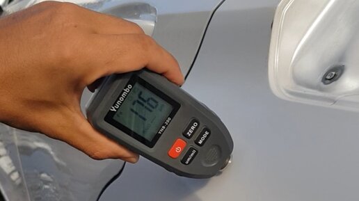 Прикладываем толщиномер к шпаклеванной детали после грунта, и показываем, какая толщина получилась. Смотреть со звуком