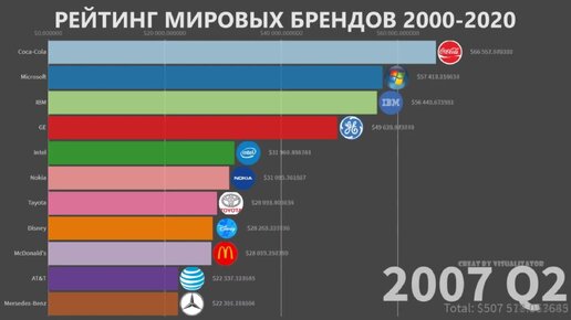 ТОП КРУПНЕЙШИХ МИРОВЫХ БРЕНДОВ 2000-2020 поквартально / Рейтинг мировых брендов по капитализации за все время