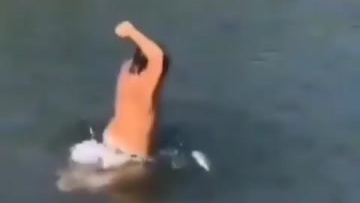 На видео попал момент борьбы ребенка с морским чудовищем. Шок!
