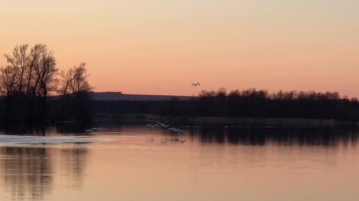 Успел заснять, как белоснежные Лебеди взлетают. Очень красивое зрелище.