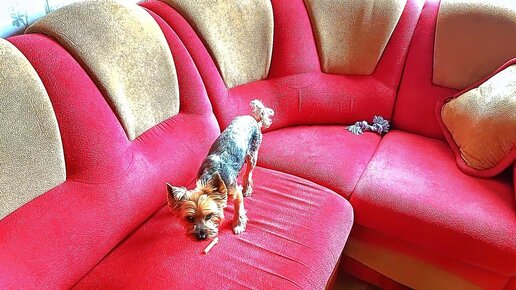 Дези грызет куриную лапку на диване!