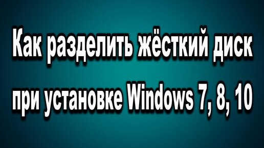 Как разделить жёсткий диск при установке Windows 7, 8, 10