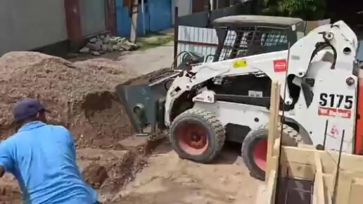 Бетономешалка в работе на мини-погрузчике Bobcat
