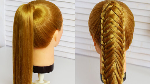 Красивый хвост с плетением волос. Прическа для девочек на каждый день