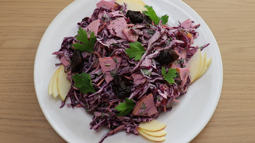 Салат на каждый день. Салат из синей капусты, черносливом и яблоком