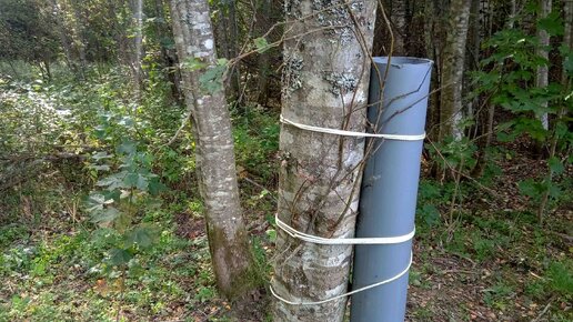 В глухом лесу обнаружили серую трубу на стволе дерева и выяснили для чего она служит