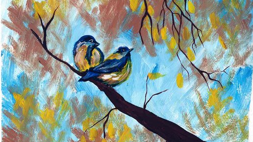 Как нарисовать синичек поэтапно. Правополушарное рисование, птицы осенью.