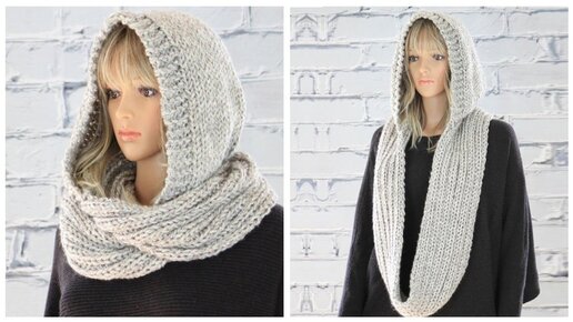 СНУД- КАПЮШОН СПИЦАМИ ОЧЕНЬ ПРОСТЫМ СПОСОБОМ.