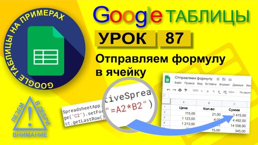 Google Таблицы. Урок 87. Отправляем формулу в ячейку скриптом. Копируем формулы (автозаполнение)