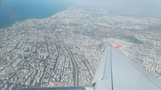 Посмотрите на Тель-Авив с неба. Взлет из аэропорта Бен-Гурион, Тель-Авив, Израиль.