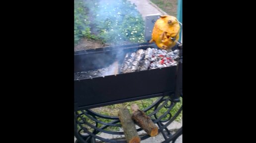 Сделали съемный гриль для мангала. Жарим первую курицу.