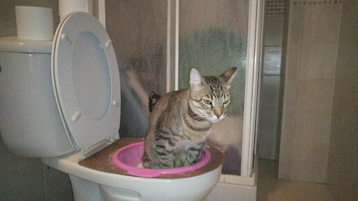 Как кот сам научился ходить на унитаз