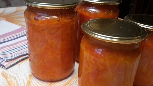 Салат на зиму. Морковь, перец, томаты и кабачок, можно и без кабачка