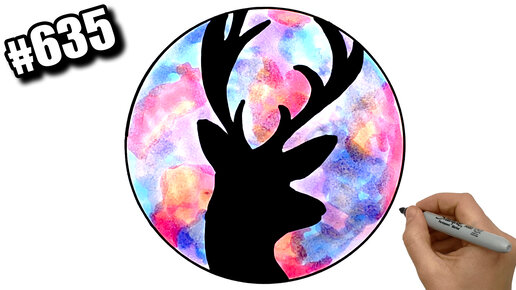 Как нарисовать силуэт оленя черным маркером на красивом фоне.