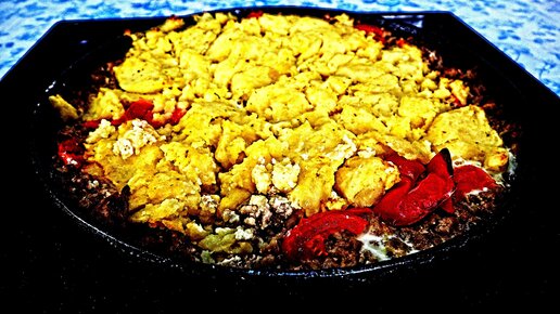 Приготовил с оставшихся продуктов в холодильнике запеканку в духовке с картофелем и помидорами