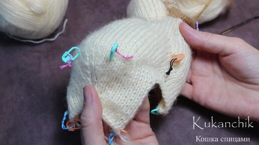 Тело вязаной спицами игрушки-кошки готово, осталось только сделать несколько швов. Часть 5