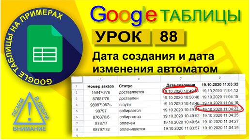 Google Таблицы. Урок 88. Автоматическое проставление даты создания и изменения записи скриптом