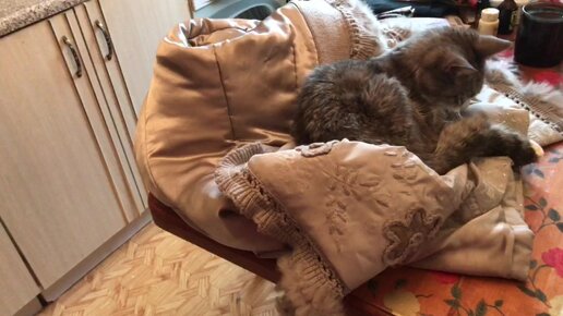 Не успела отойти , а Сенька уже на моем пальто лежит.