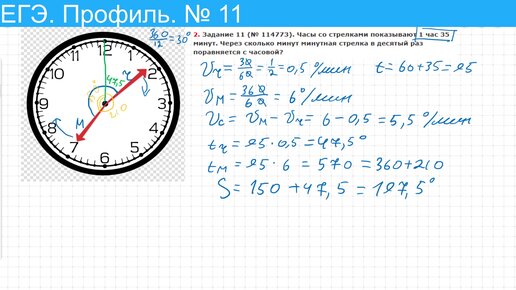 ЕГЭ математика профиль № 11 Часы со стрелками показывают 1 час 35 минут.