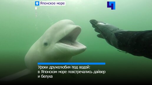 В Японском море повстречались дайвер и белуха