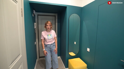 Сине-зеленые стены, ярко-желтый пуф и обилие дверей. Как блогер оформила свою прихожую в сталинке