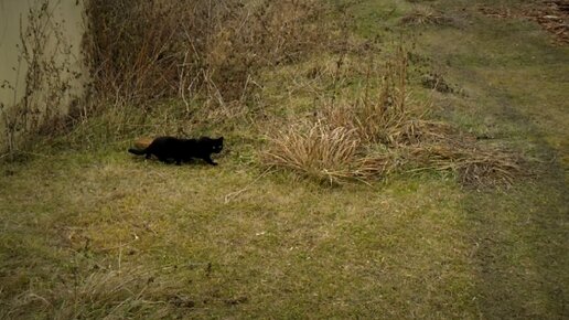Черная кошка ловит мышей. Подкрался к ней сзади...