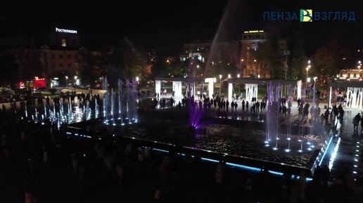 Яркое светомузыкальное шоу фонтана Пензы. Аэросъемка. Часть 6. Октябрь 2020