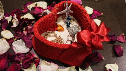ВЯЖЕМ СЕРДЕЧКО ИЗ ТРИКОТАЖНОЙ ПРЯЖИ.