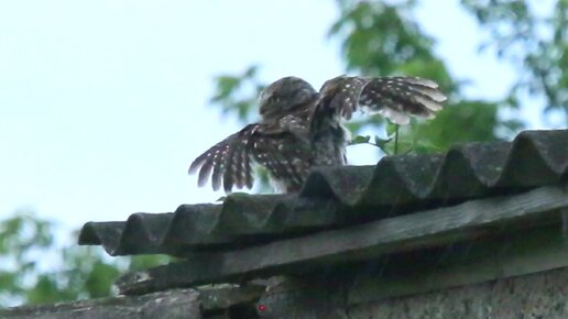 Водные процедуры у домового сыча