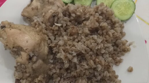 Ужин за 45 минут, за 130 рублей, на 4 человек. Куриные бедрышки с гречей в сковородке
