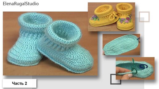 Как связать крючком детские пинетки - сапожки, часть 2