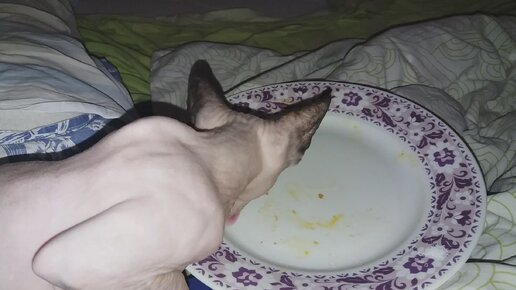 Для котенка сфинкса любая еда в два раза вкуснее из хозяйской тарелки