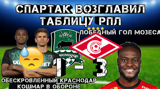 Краснодар уступил Спартаку/Смена лидера в таблице/Первый гол Мозеса
