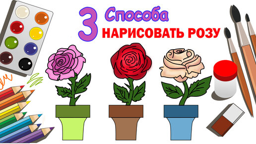 Три способа как нарисовать розу