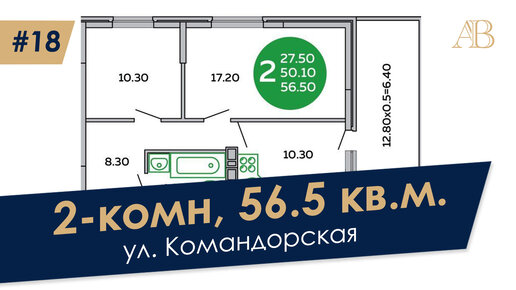 ДВУХКОМНАТНАЯ КВАРТИРА 56,5 КВ.М. В КРАСНОДАРЕ, ЖИЛОЙ КОМПЛЕКС ИНСИТИ ПАРК, УЛ КОМАНДОРСКАЯ