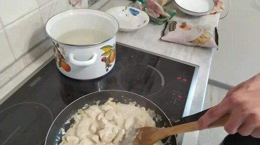 Приготовление сливочного соуса для макарон из куриного мяса. Показываю результат.