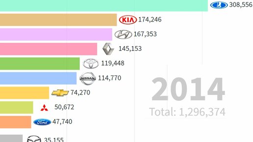 Топ-10 продаваемых автомобилей в России с 2007 по 2020 год