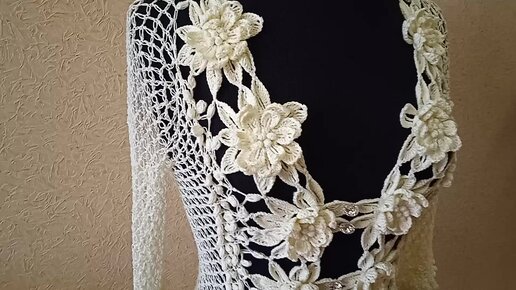 Жакет молочного цвета, связанный в стиле ирландское кружево