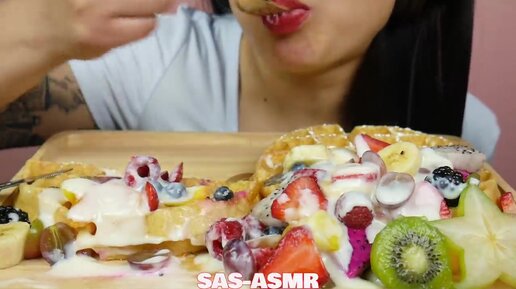 Яркий завтрак - вафли и свежие фрукты! Звуки еды!