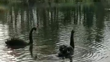 А черный лебедь на пруду качает павшую звезду